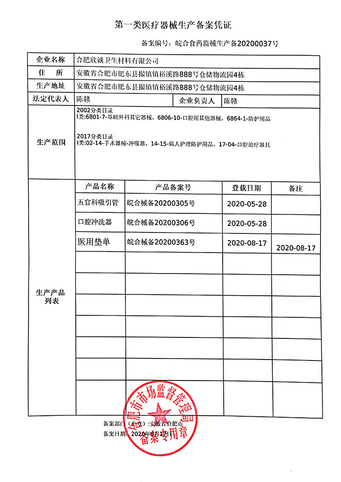 合肥欣誠衛生材料有限公司集研發、生產、銷售為一體的醫療器械企業,公司秉承“責任、學習、敬業、誠信”的企業精神,立足主營業務發展,建設核心競爭力,以“品牌、創新、專業、高效”為經營理念,把握中國醫療器械市場需求快速發展歷史機遇,加快產業整合和產品研發、創新,加大研發投入、市場渠道建設和人才建設,實現企業產業戰略轉型,提高企業核心競爭力。